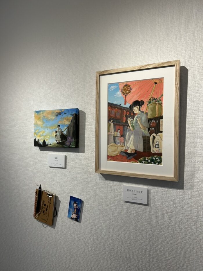 「薬草売りの少女」を描き直したものと、SMサイズのパネル